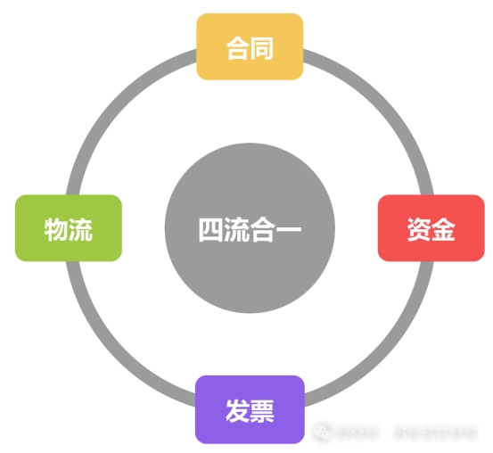 首先,企业的四流合一,指的是资金流、发票流、货物流、合同流,将这些信息在同一个平台上进行统一管理,这样一来,就可以清晰地看到交易流程及物流信息,并整合碎片化的业务模块,对整个业务链条真实性进行验证。